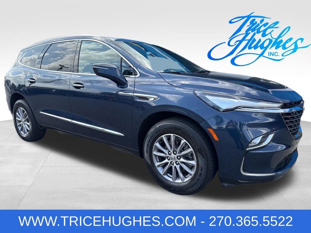 Discover the exceptional 2023 Buick Enclave Essence, a sophisticated and versatile SUV that seamlessly blends style, comfort, and advanced technology. This stunning vehicle, finished in the captivating Emperor Blue Metallic exterior, is a true standout on the road.