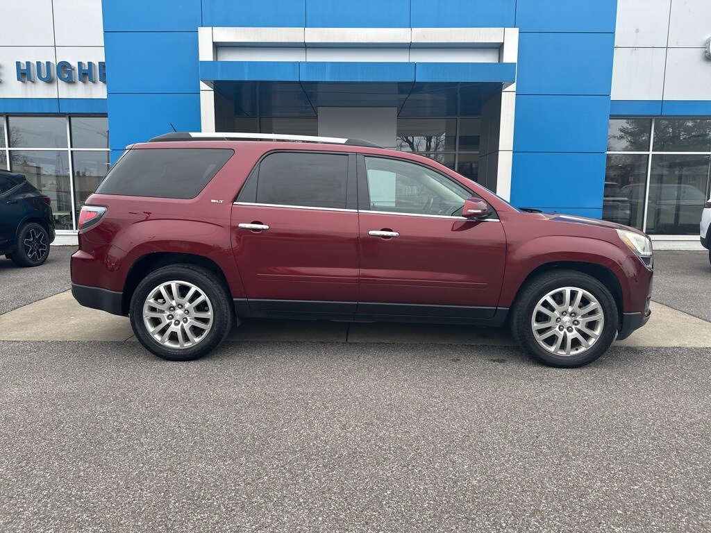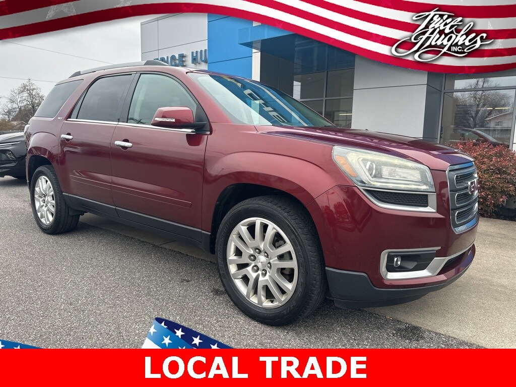 Acadia SLT-1, 4D Sport Utility, 3.6L V6 SIDI, 6-Speed Automatic, FWD, Crimson Red Tintcoat, Dark Cashmere w/Leather-Appointed Seat Trim, 10 Speakers, 19" x 7.5" Aluminum (4) Wheels, 2-Position Memory For Driver's Seat Adjuster, 20" x 7.5" Aluminum Wheels, 3.16 Axle Ratio, 3rd row seats: split-bench, 4-Wheel Disc Brakes, 7-Passenger Seating (2-2-3 Seating Configuration), 8-Way Power Driver Seat, 8-Way Power Driver Seat w/Memory, 8-Way Power Passenger Seat Adjuster, ABS brakes, Acoustical Insulation Package, Air Conditioning, Alloy wheels, AM/FM radio: SiriusXM, Auto-dimming Rear-View mirror, Automatic temperature control, Body-Color Bodyside Moldings, Body-Color Heated Power-Adjustable Outside Mirrors, Bodyside moldings, Bose Premium 10-Speaker Audio System, Brake assist, Bumpers: body-color, Carpeted Removable Front 2nd & 3rd Row Floor Mats, CD player, Compass, Delay-off headlights, Driver door bin, Driver vanity mirror, Dual front impact airbags, Dual front side impact airbags, Dual SkyScape 2-Panel Power Sunroof, Electronic Stability Control, Emergency communication system: OnStar Guidance, Exterior Parking Camera Rear, Forward Collision Alert & Lane Departure Warning, Four wheel independent suspension, Front anti-roll bar, Front Bucket Seats, Front Center Armrest w/Storage, Front dual zone A/C, Front fog lights, Front reading lights, Fully automatic headlights, Garage door transmitter, Heated door mirrors, Heated Driver & Front Passenger Seats, Heated front seats, Heated Power-Adjustable Outside Mirrors, Heavy-Duty Cooling System, Illuminated entry, Inside Rear-View Auto-Dimming Mirror, Leather Shift Knob, Leather-Appointed Seat Trim, Leather-Wrapped Steering Wheel, Low tire pressure warning, NavTraffic, Occupant sensing airbag, Open Road Package, Outside temperature display, Overhead airbag, Overhead console, Panic alarm, Passenger door bin, Passenger vanity mirror, Power door mirrors, Power driver seat, Power Liftgate, Power passenger seat, Power Rear Liftgate Body, Power steering, Power windows, Power Windows w/Driver Express-Up & -Down, Preferred Equipment Group 4SA, Premium Edition Package, Radio data system, Radio: Color Touch AM/FM/CD w/IntelliLink, Radio: Color Touch Navigation w/IntelliLink, Rear air conditioning, Rear anti-roll bar, Rear audio controls, Rear Audio System Controls, Rear Parking Sensors, Rear reading lights, Rear window defroster, Rear window wiper, Remote keyless entry, Remote Vehicle Start, Roof rack: rails only, Security system, Side Blind Zone Alert & Rear Cross Traffic Alert, Single Outlet Exhaust, SiriusXM Satellite Radio, Speed control, Speed-sensing steering, Spoiler, Steering Wheel Mounted Audio Controls, Steering wheel mounted audio controls, Tachometer, Telescoping steering wheel, Tilt & Telescopic Steering Column, Tilt steering wheel, Traction control, Trailer Hitch, Trailering Equipment, Tri-Zone Automatic Climate Control, Trip computer, Turn signal indicator mirrors, Universal Home Remote, Variable Effort Power Steering, Variably intermittent wipers, Voltmeter, Acadia SLT-1, 4D Sport Utility, 3.6L V6 SIDI, 6-Speed Automatic, FWD, Crimson Red Tintcoat, Dark Cashmere w/Leather-Appointed Seat Trim. Awards: