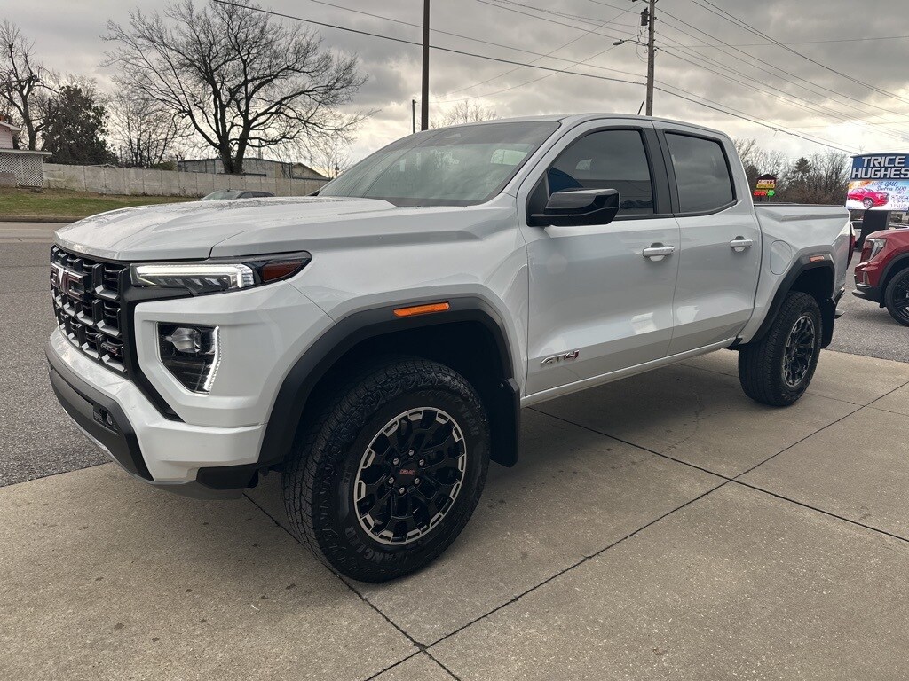 *SOLD HERE BRAND NEW*, *BLUETOOTH*, *ONSTAR*, *SIRIUS/XM SATELLITE RADIO*, *WELL MAINTAINED*, *BOSE RADIO*, *APPLE/ANDROID CARPLAY*, https://www.tricehughesgm.com/Leave-Us-a-Review-Princeton-KY, Canyon AT4, 4D Crew Cab, 2.7L Turbo, 8-Speed Automatic, 4WD, Summit White, Jet Black/Timber Cloth, 120-Volt Bed Mounted Power Outlet, 2 1st Row USB Charge/Data Ports, 2 Rear USB Ports in Center Console (Charge-Only), 3.42 Rear Axle Ratio, 4-Way Manual Front Passenger Seat Adjuster, 4-Wheel Disc Brakes, 6 Speakers, 6-Speaker Audio System Feature, 8-Way Power Driver Seat Adjuster, ABS brakes, Air Conditioning, Alloy wheels, AM/FM radio: SiriusXM, Apple CarPlay/Android Auto, Auto High-beam Headlights, Auto-dimming Rear-View mirror, Automatic Emergency Braking, Automatic Locking Rear Differential, Automatic Stop/Start, Automatic temperature control, Brake assist, Bumpers: body-color, Canyon Pro Safety, Cloth/CoreTec Seat Trim, Compass, Delay-off headlights, Driver & Front Passenger Illuminated Visors, Driver door bin, Driver Mode Selector, Driver vanity mirror, Dual front impact airbags, Dual front side impact airbags, Dual-Zone Automatic Air Conditioning, Electronic Stability Control, EZ-Lift & Lower Tailgate, Following Distance Indicator, Forward Collision Alert, Front anti-roll bar, Front Bucket Seats, Front Center Armrest, Front dual zone A/C, Front fog lights, Front LED Fog Lamps, Front Passenger Seatback Map Pocket, Front Pedestrian & Bicyclist Braking, Front reading lights, Front wheel independent suspension, Heated door mirrors, Heated Driver & Front Passenger Seats, Heated front seats, Heated Power-Adjustable Outside Mirrors, Illuminated entry, Inside Rear-View Auto-Dimming Mirror, IntelliBeam Automatic High Beam On/Off, Interior Overhead Courtesy Light w/Dual Reading Lamp, Lane Keep Assist w/Lane Departure Warning, Low tire pressure warning, Manual Rear-Sliding Window, MultiStow Tailgate, Navigation System, Occupant sensing airbag, Outside temperature display, Overhead airbag, Overhead console, Panic alarm, Passenger door bin, Passenger vanity mirror, Power door mirrors, Power Driver Lumbar Control Seat Adjuster, Power driver seat, Power steering, Power windows, Preferred Equipment Group 4SG, Radio data system, Radio: 11.3" Diagonal Premium GMC Infotainment Sys, Rear of Console 120-Volt Power Outlet, Rear reading lights, Rear step bumper, Rear window defroster, Rear-Window Electric Defogger, Remote keyless entry, Remote Vehicle Starter System, Security system, SiriusXM w/360L, Speed control, Speed-sensing steering, Split folding rear seat, Steering wheel mounted audio controls, Stop/Start System Disable Button Engine Control, Tachometer, Tailgate Keyed Cylinder Lock, Telescoping steering wheel, Tilt & Telescopic Manual Steering Column, Tilt steering wheel, Traction control, Trip computer, Variably intermittent wipers, Wheels: 18" x 8.5" Dark Gray Machined Finish Alum, Wheels: 20" x 9" Full Gloss Dark Gray Aluminum, Wireless Apple CarPlay/Wireless Android Auto, Canyon AT4, 4D Crew Cab, 2.7L Turbo, 8-Speed Automatic, 4WD, Summit White, Jet Black/Timber Cloth.