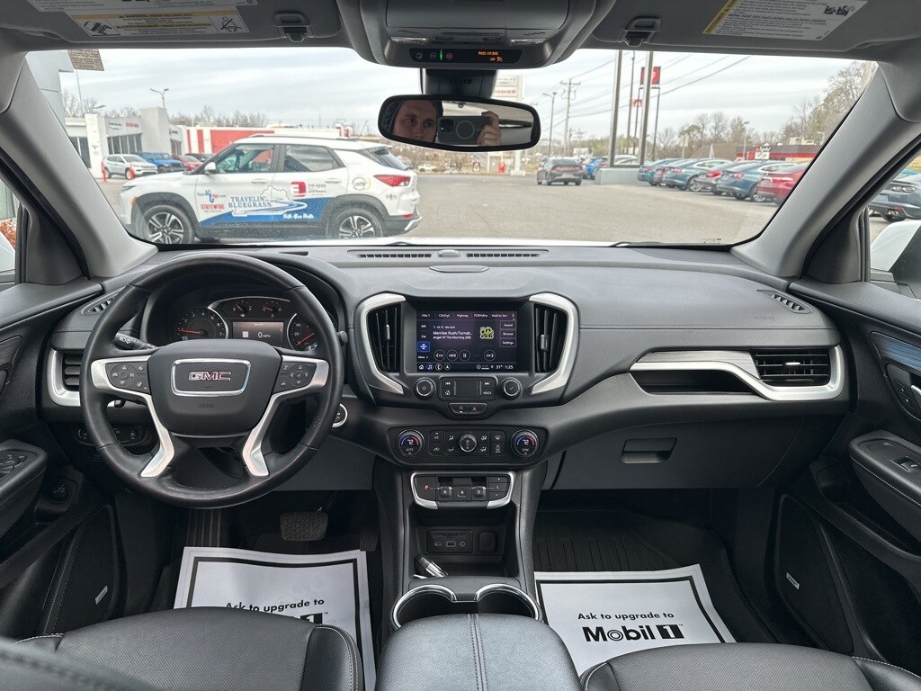 AWD, 2 USB Data Ports, 2 USB Data Ports w/SD Card Reader, 3.47 Final Drive Axle Ratio, 4-Wheel Disc Brakes, 6 Speakers, 6-Speaker Audio System Feature, 6-Way Power Front Passenger Seat, 8-Way Power Driver Seat Adjuster, ABS brakes, Adaptive Cruise Control, Air Conditioning, Alloy wheels, AM/FM radio: SiriusXM, Auto High-beam Headlights, Auto-dimming Rear-View mirror, Automatic temperature control, Bluetooth® For Phone, Brake assist, Bumpers: body-color, Compass, Delay-off headlights, Driver & Front Passenger Heated Seats, Driver door bin, Driver vanity mirror, Dual front impact airbags, Dual front side impact airbags, Electronic Stability Control, Emergency communication system: OnStar and GMC connected services capable, Floor Liner Package (LPO), Four wheel independent suspension, Front & Rear All-Weather Floor Liners (LPO), Front anti-roll bar, Front Bucket Seats, Front Center Armrest, Front dual zone A/C, Front fog lights, Front Passenger 2-Way Power Lumbar, Front reading lights, Fully automatic headlights, Garage door transmitter, GMC Pro Safety Plus, Heated door mirrors, Heated front seats, Heated steering wheel, Illuminated entry, Infotainment Package II, Integrated Cargo Liner (LPO), Lane Change Alert w/Side Blind Zone Alert, Low tire pressure warning, Memory seat, Occupant sensing airbag, Outside temperature display, Overhead airbag, Overhead console, Panic alarm, Passenger door bin, Passenger vanity mirror, Perforated Leather-Appointed Seat Trim, Power door mirrors, Power Driver Lumbar Control, Power driver seat, Power Liftgate, Power passenger seat, Power steering, Power windows, Preferred Equipment Group 4SA, Premium 7-Speaker Bose Sound System w/Amplifier, Radio data system, Radio: GMC Infotainment Audio System w/8" Display, Radio: GMC Infotainment Audio System w/Navigation, Rear anti-roll bar, Rear Cross-Traffic Alert, Rear Park Assist, Rear seat center armrest, Rear window defroster, Rear window wiper, Remote keyless entry, Roof rack: rails only, Safety Alert Seat, Security system, SiriusXM, Skyscape Power Sunroof w/Power Sunscreen, Speed control, Speed-sensing steering, Split folding rear seat, Spoiler, Steering wheel mounted audio controls, Tachometer, Telescoping steering wheel, Tilt steering wheel, Traction control, Trip computer, Turn signal indicator mirrors, Variably intermittent wipers, Wheels: 18" x 7" Silver Painted Aluminum, Wireless Apple CarPlay/Wireless Android Auto, AWD.