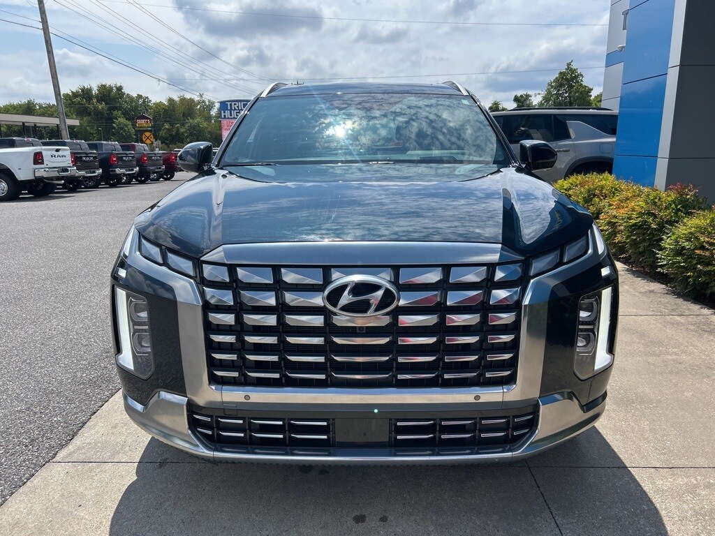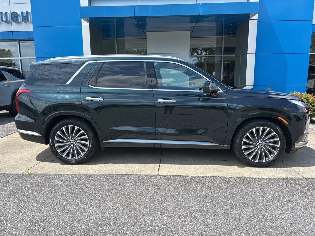 Palisade Calligraphy, 4D Sport Utility, V6, 8-Speed Automatic with SHIFTRONIC, AWD, Robust Emerald, Black w/Leather Seat Trim, 12 Speakers, 3.648 Axle Ratio, 3rd row seats: split-bench, 4-Wheel Disc Brakes, ABS brakes, Air Conditioning, Alloy wheels, AM/FM radio: SiriusXM, Apple CarPlay & Android Auto, Auto High-beam Headlights, Auto-dimming door mirrors, Auto-dimming Rear-View mirror, Auto-leveling suspension, Automatic temperature control, Brake assist, Bumpers: body-color, Compass, Delay-off headlights, Driver door bin, Driver vanity mirror, Dual front impact airbags, Dual front side impact airbags, Electronic Stability Control, Emergency communication system, Exterior Parking Camera Rear, Four wheel independent suspension, Front anti-roll bar, Front Bucket Seats, Front Center Armrest, Front dual zone A/C, Front reading lights, Fully automatic headlights, Garage door transmitter: HomeLink, harman/kardon® Speakers, Heads-Up Display, Heated & Ventilated Front Bucket Seats, Heated door mirrors, Heated front seats, Heated rear seats, Heated steering wheel, Illuminated entry, Knee airbag, Low tire pressure warning, Memory seat, Navigation System, Occupant sensing airbag, Option Group 01, Outside temperature display, Overhead airbag, Overhead console, Panic alarm, Passenger door bin, Passenger vanity mirror, Power door mirrors, Power driver seat, Power Liftgate, Power moonroof, Power passenger seat, Power steering, Power windows, Premium Nappa Leather Seat Trim, Radio data system, Radio: AM/FM/MP3 Premium Audio System, Rain sensing wipers, Rear air conditioning, Rear anti-roll bar, Rear audio controls, Rear reading lights, Rear side impact airbag, Rear window defroster, Rear window wiper, Reclining 3rd row seat, Remote keyless entry, Security system, Speed control, Speed-sensing steering, Split folding rear seat, Spoiler, Steering wheel mounted audio controls, Tachometer, Telescoping steering wheel, Tilt steering wheel, Traction control, Trip computer, Turn signal indicator mirrors, Variably intermittent wipers, Ventilated front seats, Ventilated rear seats, Wheels: 20" x 7.5J Calligraphy Exclusive Alloy, Palisade Calligraphy, 4D Sport Utility, V6, 8-Speed Automatic with SHIFTRONIC, AWD, Robust Emerald, Black w/Leather Seat Trim.